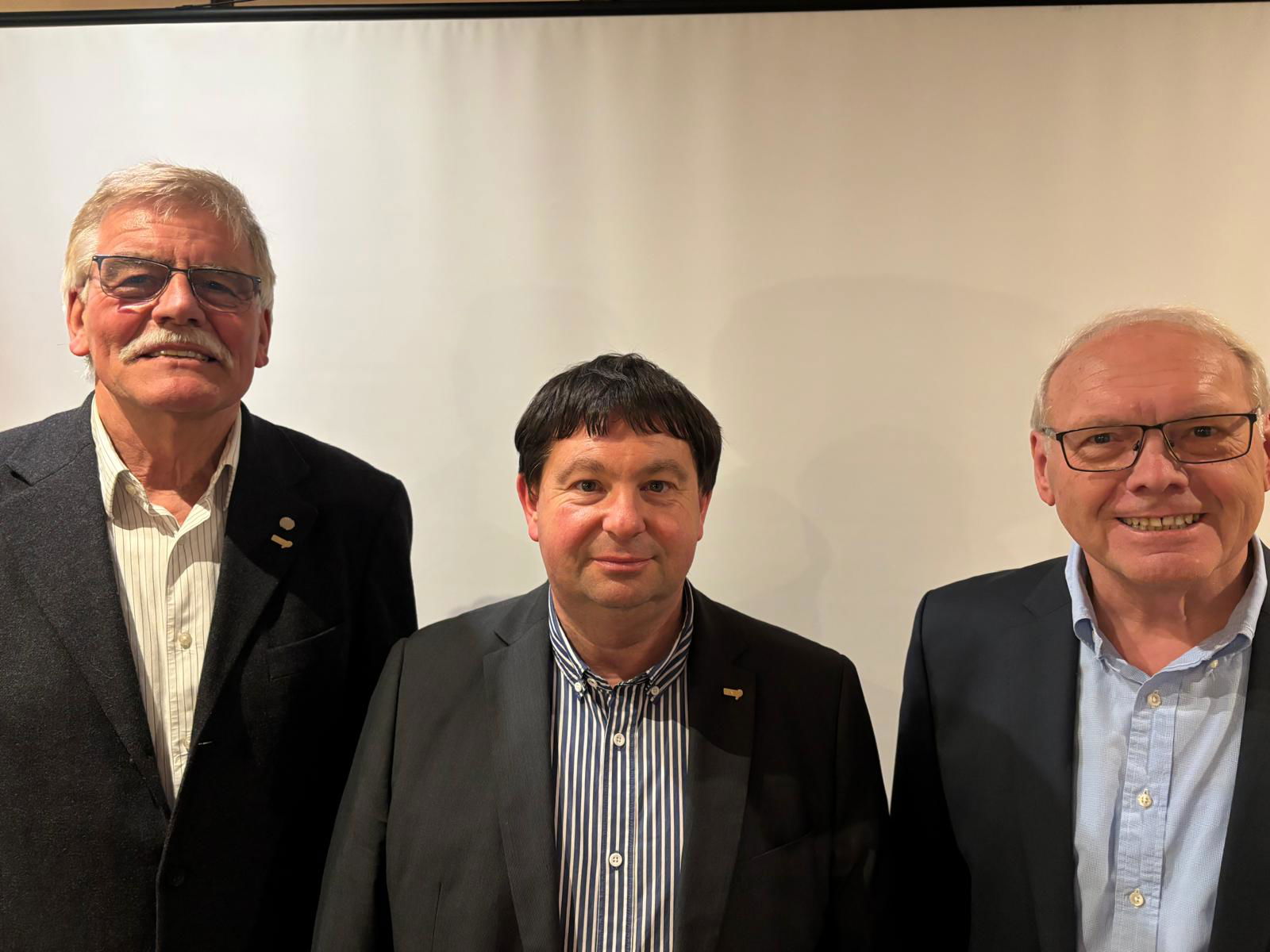 An der Spitze: Im März 2025 hat Rainer Schröter den Vorsitz der TNB-Region DEV von Gerrit Gerds (rechts) übernommen. Zu den Gratulanten gehörte TNB-Vizepräsident Jörg Kutkowski.